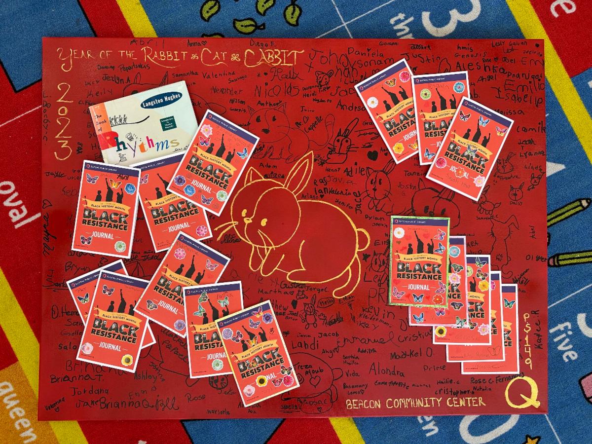 On February 17, QCH Beacon's intergenerational arts and crafts club partnered with Queens Public Library to highlight Black History Month. Young people and older adults worked together on poetry and journaling in booklets gifted by the Queens Public Library of Jackson Heights and Langston Hughes Library.